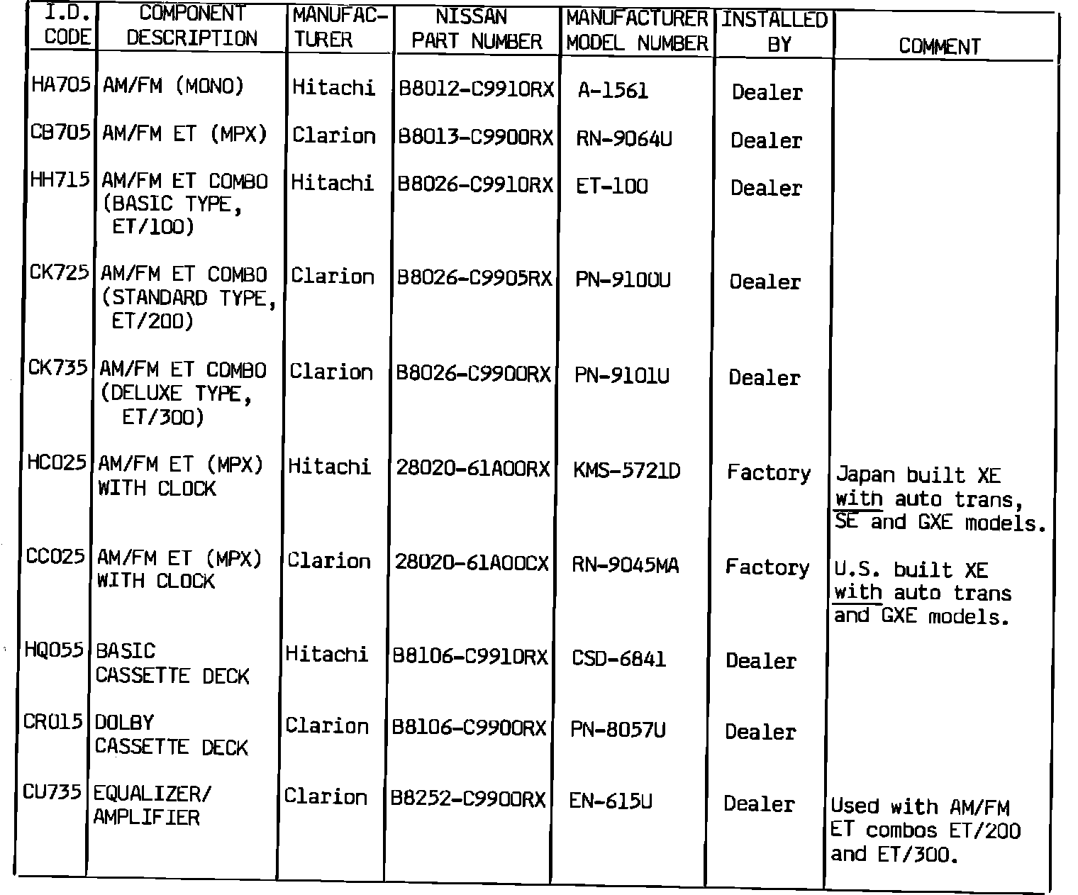 Stanza Hatchback L4-1974cc 2.0L SOHC (CA20E)