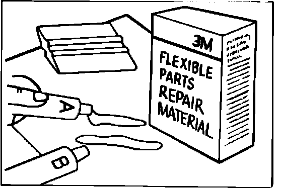 3. Mix a quantity of Flexible Parts Repair Material. Lay glass cloth on a clean surface. Use a squeegee to force the Flexible Parts Repair Material into the glass cloth.