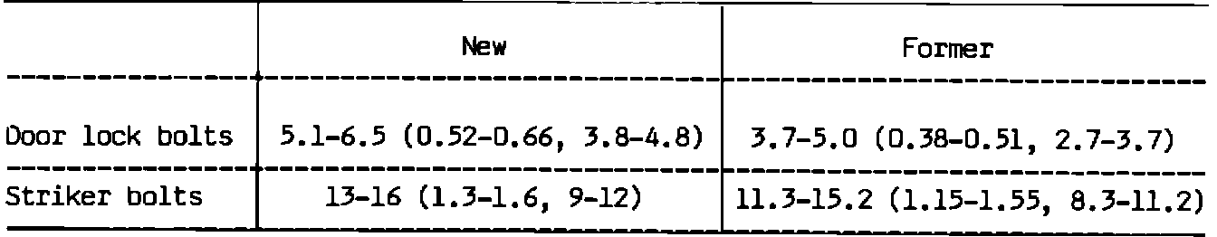 This Bulletin gives revised torque specifications for door lock and door striker bolts (see illustration on next page).
