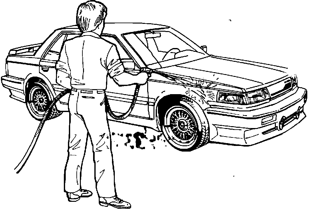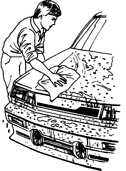 1. Park vehicle in shade and rinse thoroughly using a spray of water. If the vehicle is extremely dirty, wash it with soap and water. This will loosen dirt and cool the sheet metal. The surface must not be allowed to dry during the cleaning process.