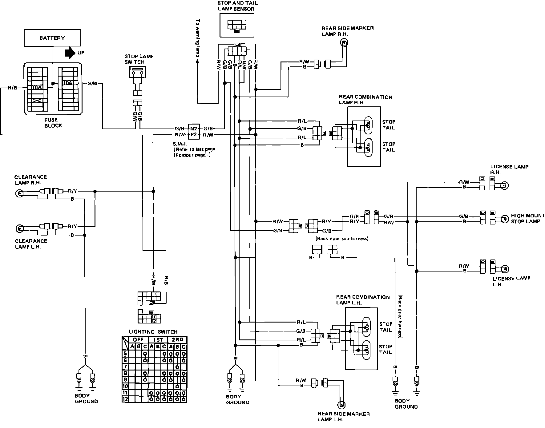 Fig. 119 Clearance, License, Stop & Tail Lamp Wiring Circuit. Hatchback: