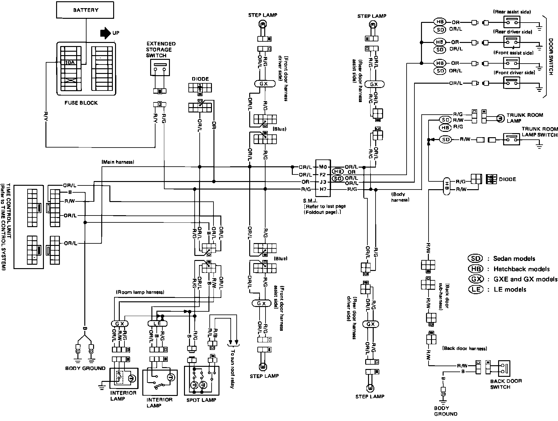 Fig. 127 Interior, Luggage Compartment, Spot & Step Lamp Wiring Circuit: