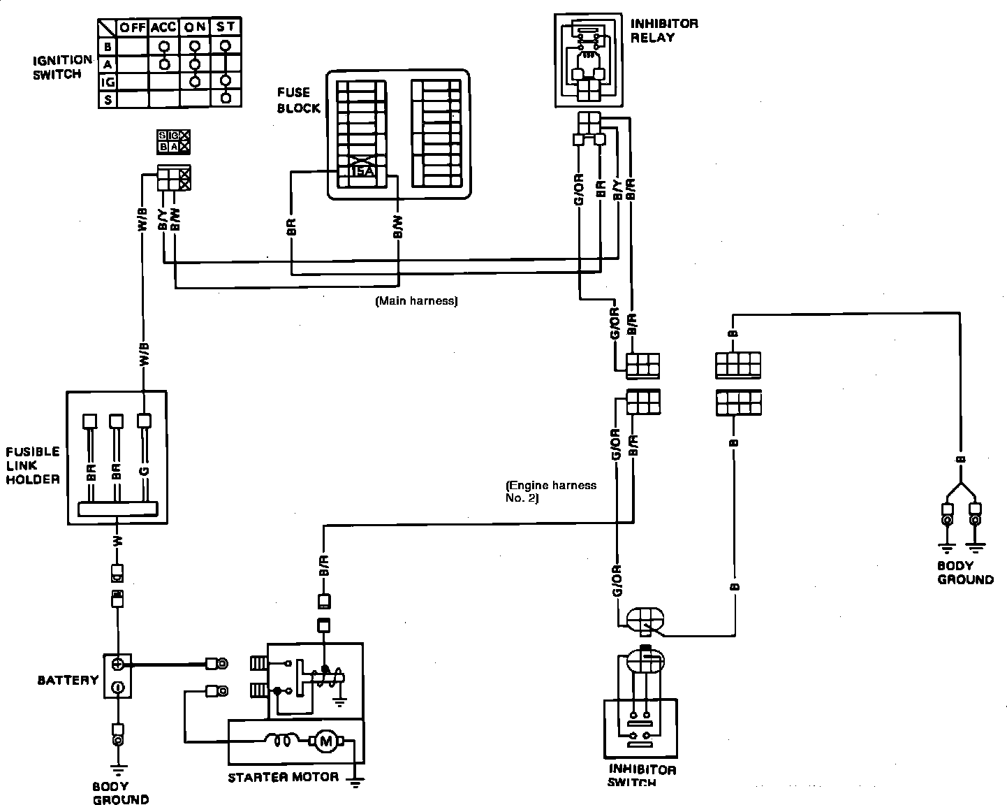 Fig. 136 Starting System Wiring Circuit. w/Automatic Transmission: