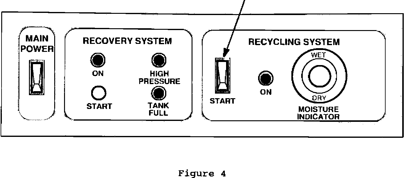 b. When the tank is full of recovered refrigerant, the limit switch will cause the "TANK FULL" light to come on. When this light is on, no more refrigerant can be recovered until the refrigerant in the tank is recycled (Figure 4).