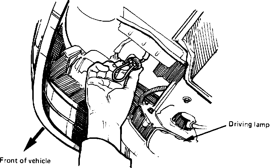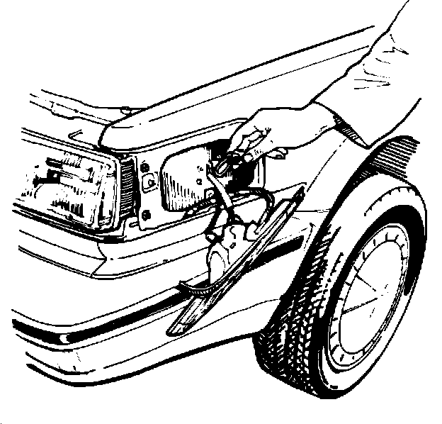 Remove the 4 Phillips head screws which secure the front left side lamp assembly. Pull the lamp assembly away from its mounting and let it hang. The ambient temperature sensor connector is located just behind the lamp assembly. Jump from one side of the female connector to the other side as shown below.