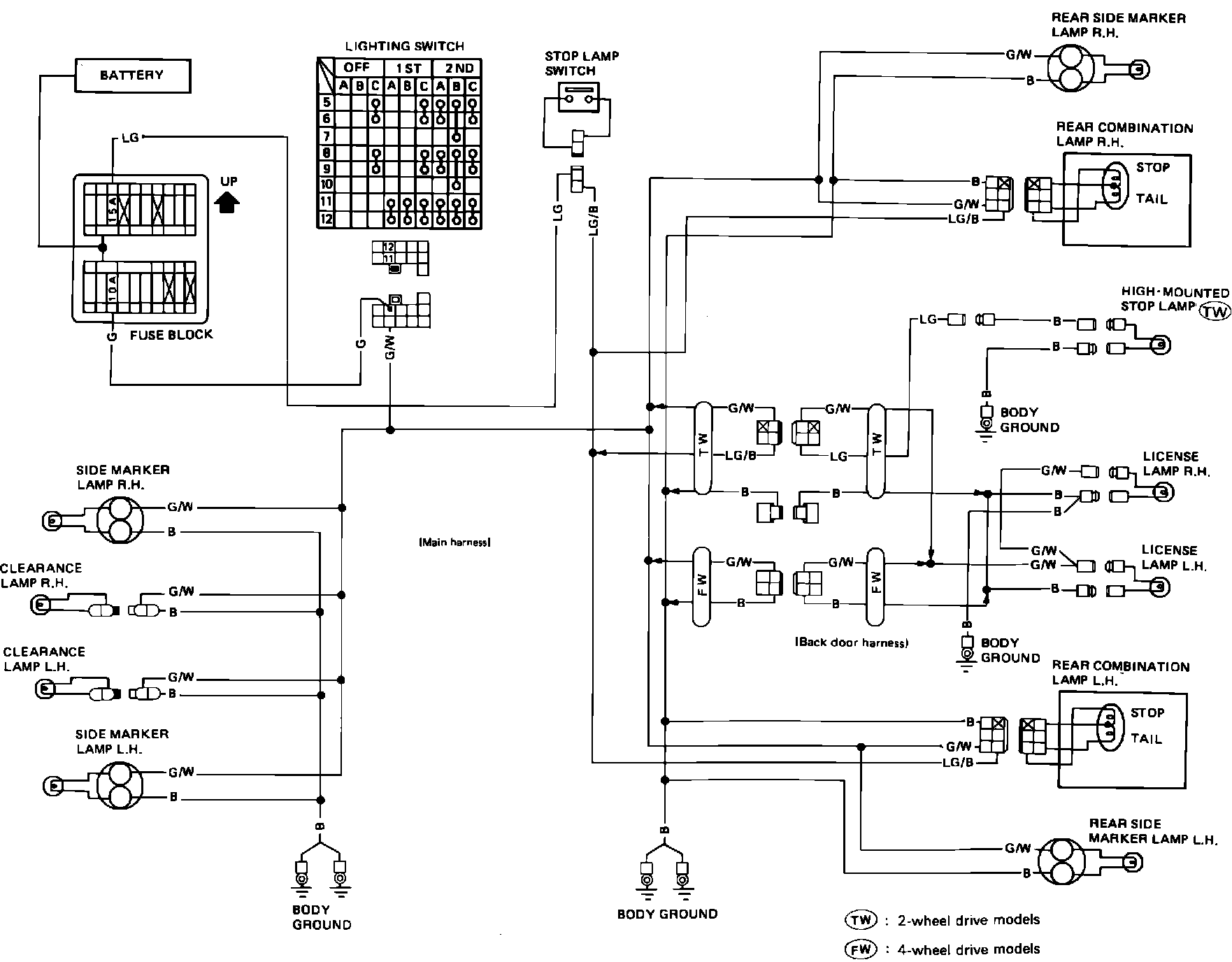 Fig. 151 Clearance, License, Side Marker, Stop & Tail Lamp Wiring Circuit: