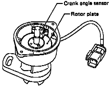 The crank angle sensor is a basic component of the entire E.C.C.S. It monitors engine speed and piston position, and sends to the E.C.U. signals on which the controls of fuel injection, ignition timing and other functions are based.