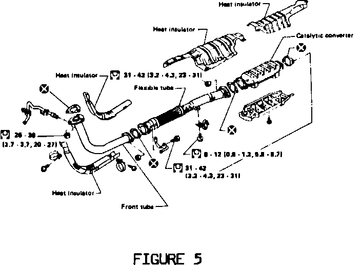 13. Remove the front tube and catalytic converter heat insulators (using a 10 mm socket), the center exhaust tube (using a 17 mm socket), and then the front tube from the exhaust system (Figure 5).