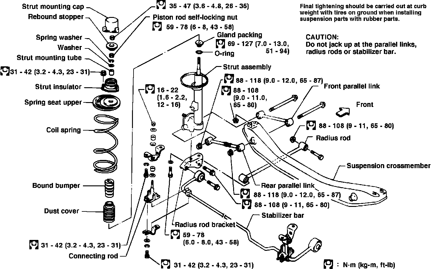 Fig. 22 Rear suspension. 1985-88 Maxima & 1987-88 Stanza: