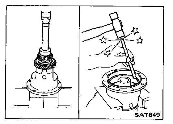 4. Measure clearance between side gear and pinion mate gear,referring to "Inspection". If necessary, adjust.