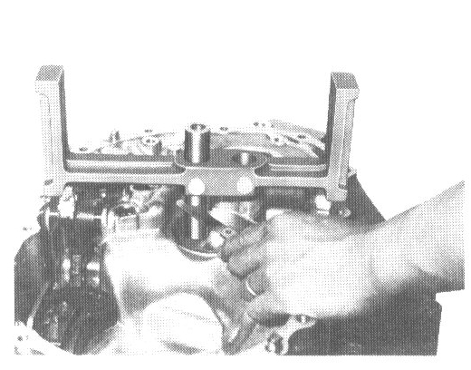 7. Place bridge, legs up, onto machined surface of clutch housing and allow gauging plunger to rest upon mating surface where mainshaft front bearing outer race fits.