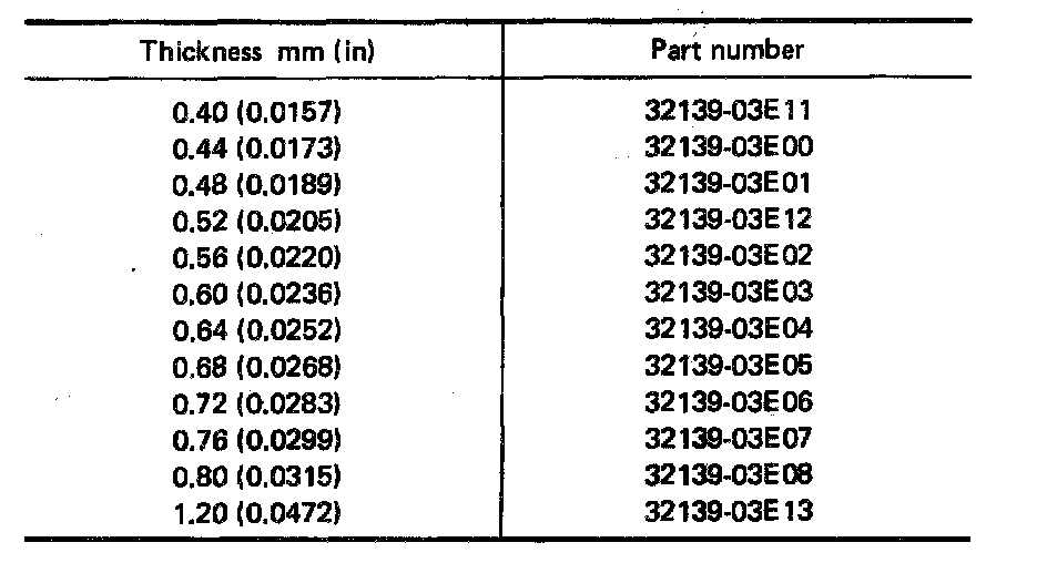 9. Use feeler gauge reading to select correct mainshaft preload shim(s) from chart above.