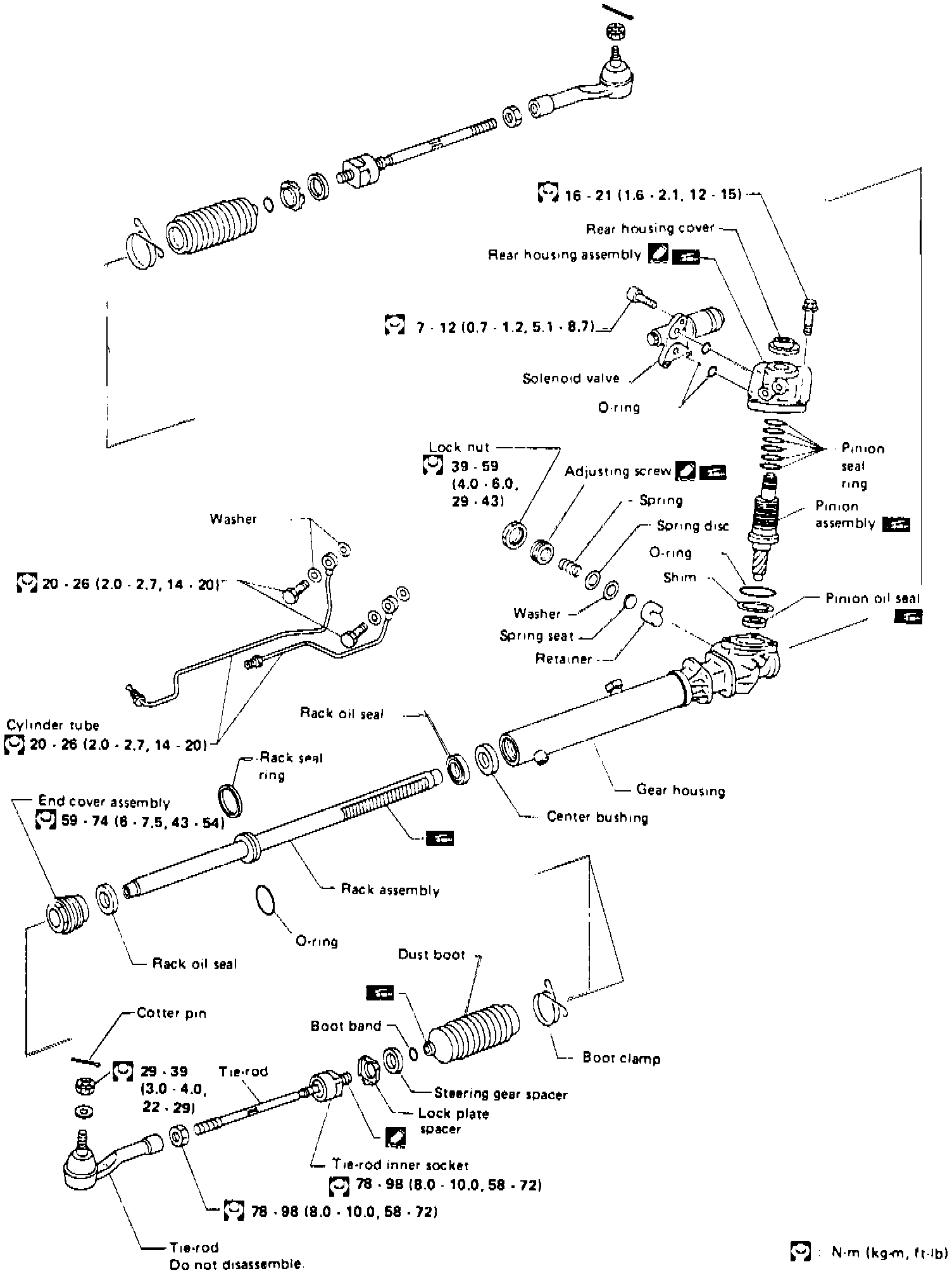 1. Before disassembling, measure pinion rotating torque and record, then drain fluid.