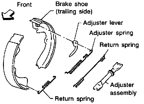 3. Pull out brake shoes in the direction of the arrows as illustrated.