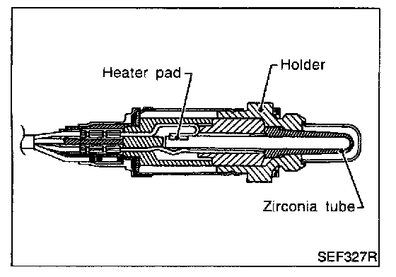 This sensor is made of ceramic zirconia. The zirconia generates voltage from approximately 1 V in richer conditions to 0 V in leaner conditions.