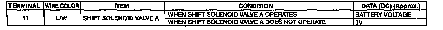 TRANSMISSION CONTROL MODULE TERMINALS AND REFERENCE VALUE BETWEEN TERMINAL AND GROUND