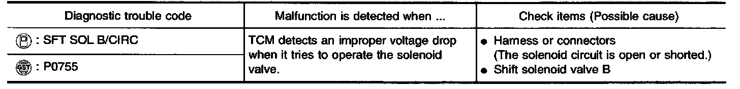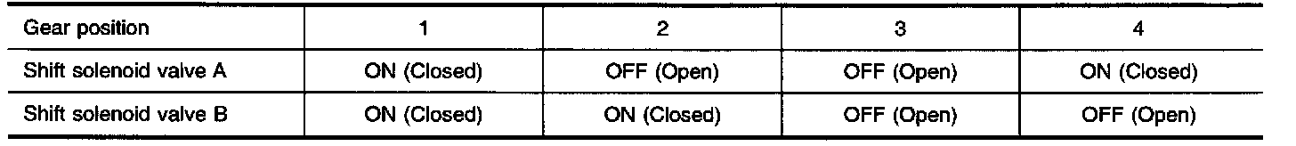 Shift solenoid valves A and B are turned "ON" or "OFF" by the TCM in response to signals sent from the PNP switch, vehicle speed and throttle position sensors. Gears will then be shifted to the optimum position.