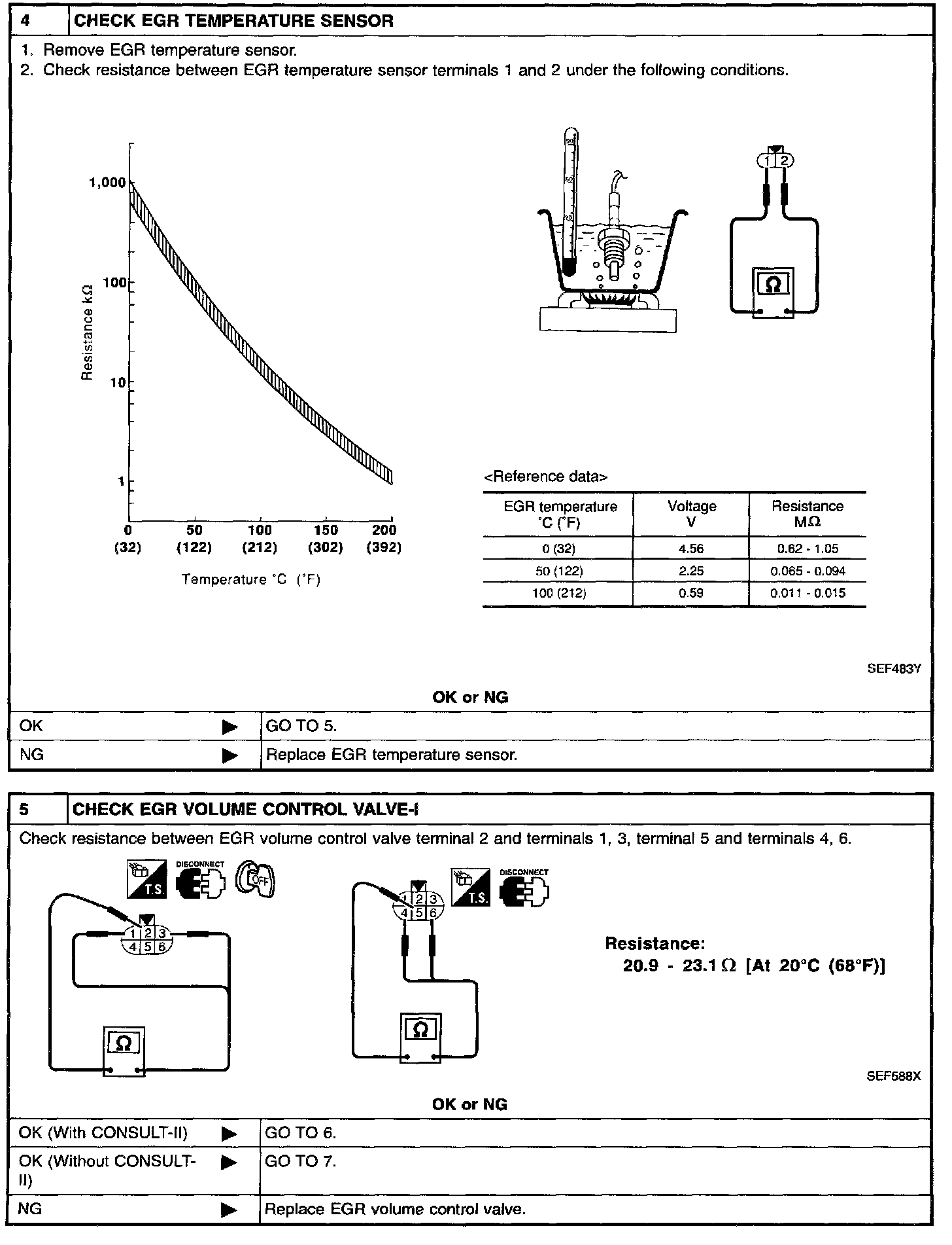 - Engine coolant temperature and EGR temperature must be verified in "DATA MONITOR" mode with CONSULT-II before starting DTC WORK SUPPORT test. If it is out of range below, the test cannot be conducted.