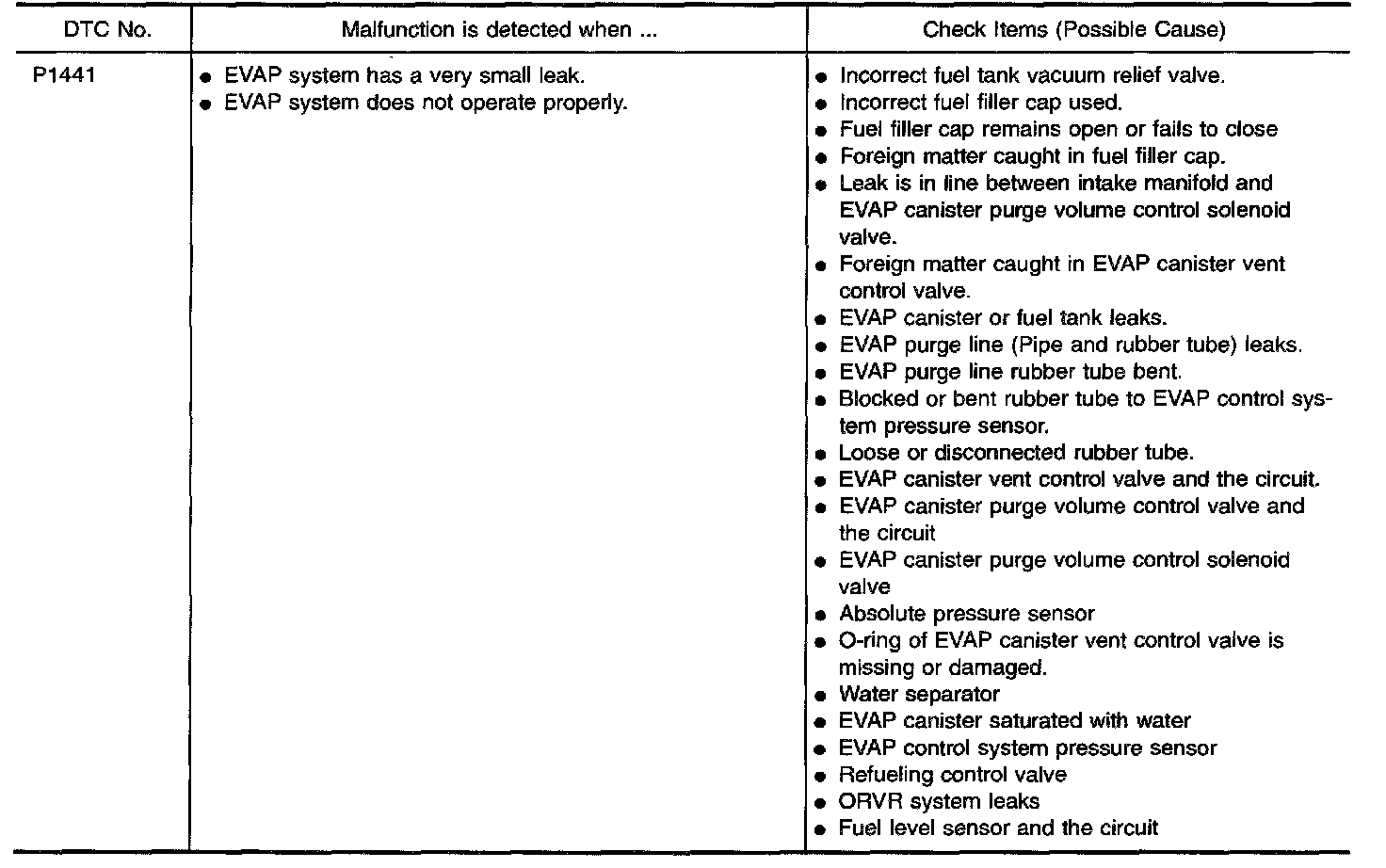 - If DTC P1441 is displayed with P0440, perform TROUBLE DIAGNOSIS FOR DTC P1441 first
