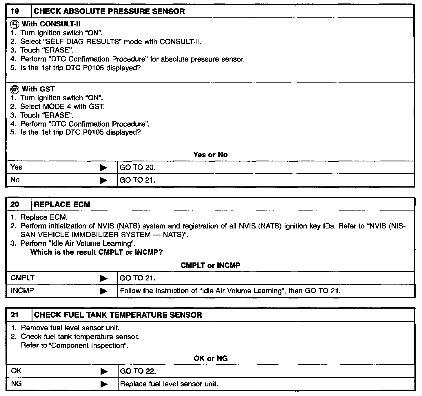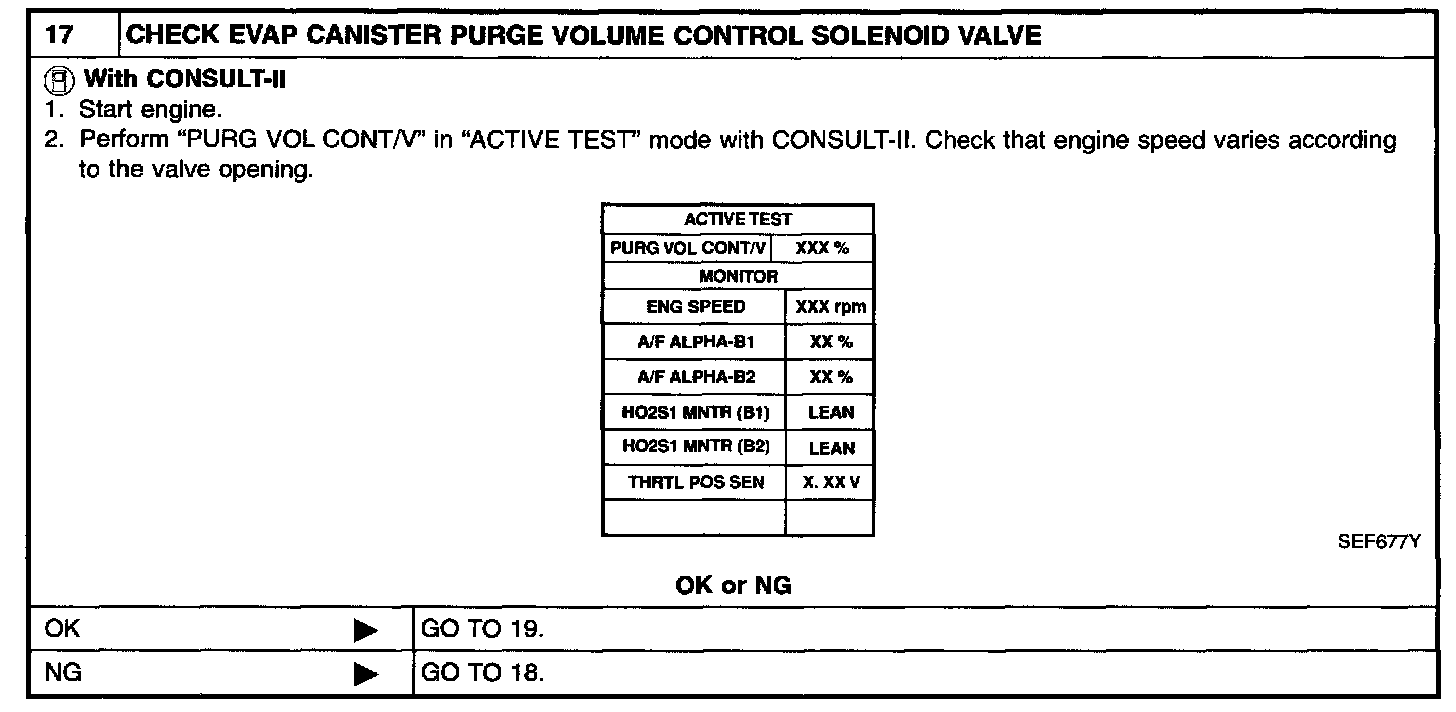 - If the engine speed cannot be maintained within the range displayed on CONSULT-II screen, go to "Basic inspection".