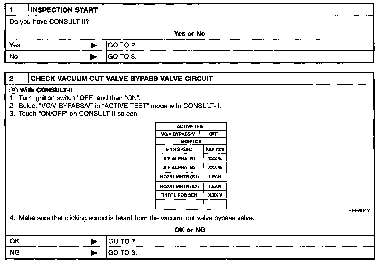 NOTE: If "DTC Confirmation Procedure" has been previously conducted, always turn ignition switch "OFF" and wait at least 10 seconds before conducting the next test.