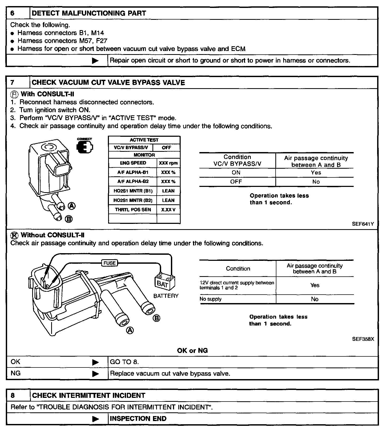 Malfunction is detected when an improper voltage signal is sent to ECM through vacuum cut valve bypass valve.