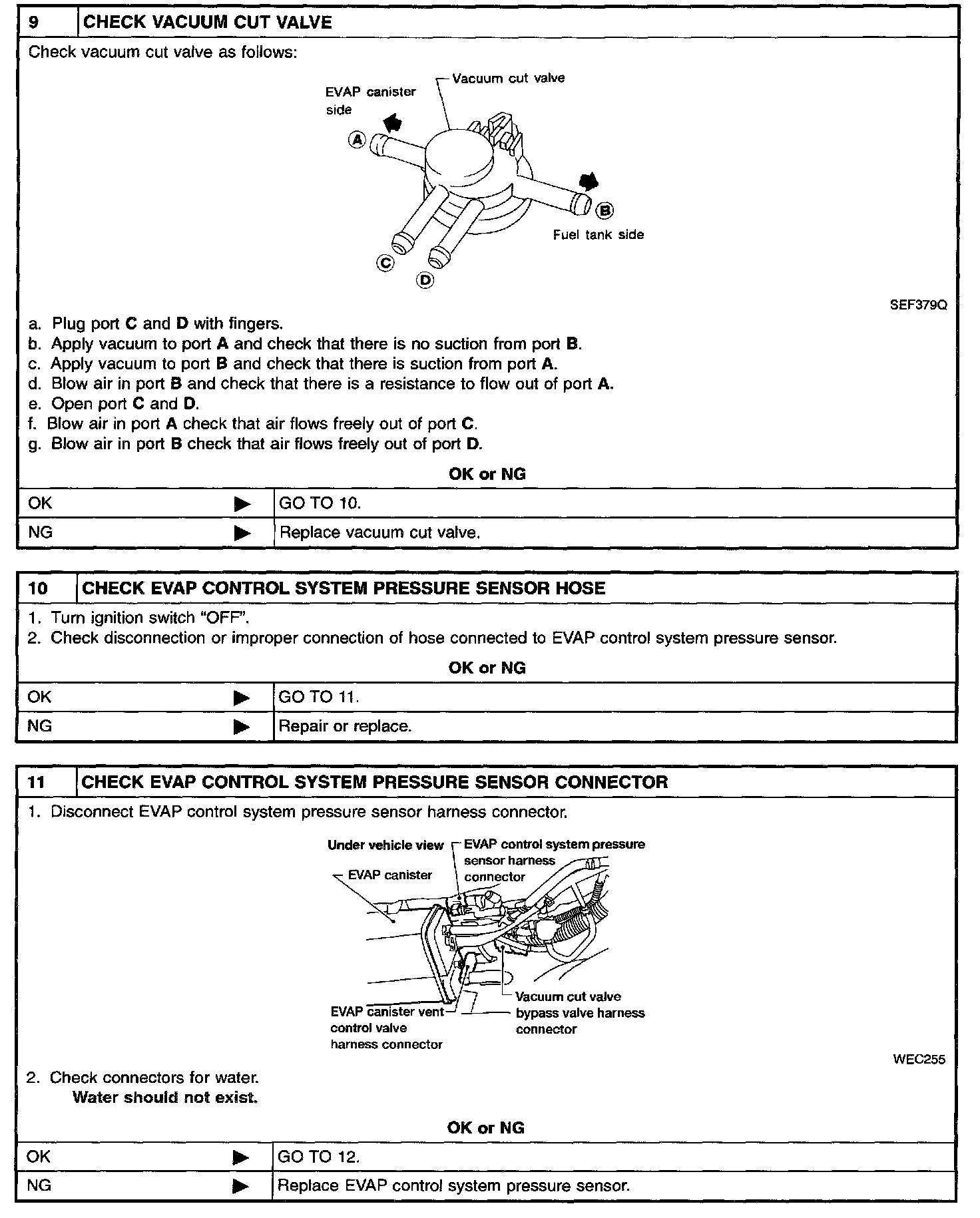 The vacuum cut valve and vacuum cut valve bypass valve are installed in parallel on the EVAP purge line between the fuel tank and the EVAP canister.