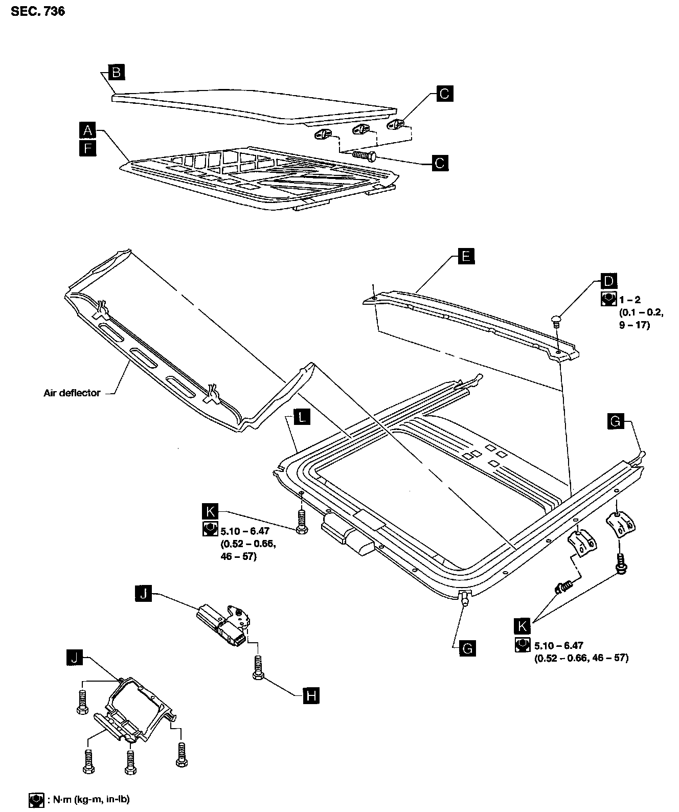3. Remove the six bolts securing glass lid assembly to sunroof assembly. C
