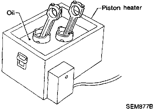 2. Heat piston to 60 to 70°C (140 to 158°F) and assemble piston, piston pin, connecting rod and new snap ring.