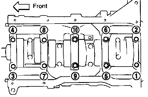 6. Loosen main bearing caps in numerical order as shown in figure.