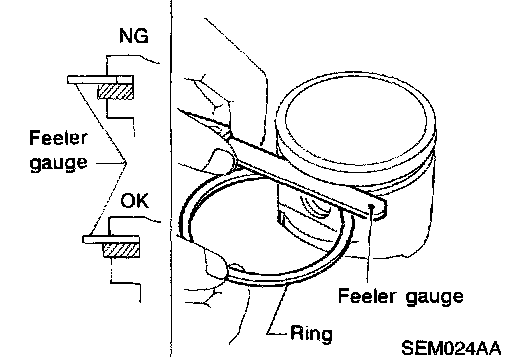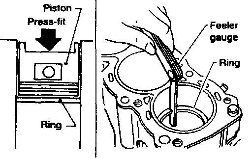 If gap exceeds maximum limit with a new ring, rebore cylinder and use oversized piston and piston rings.