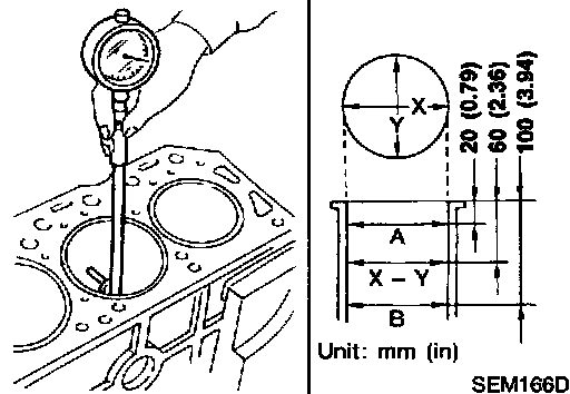 If it exceeds the limit, rebore all cylinders. Replace cylinder block if necessary.