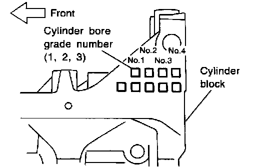 ^ If cylinder block or piston is replaced, match piston grade with grade number on cylinder block lower surface.