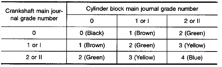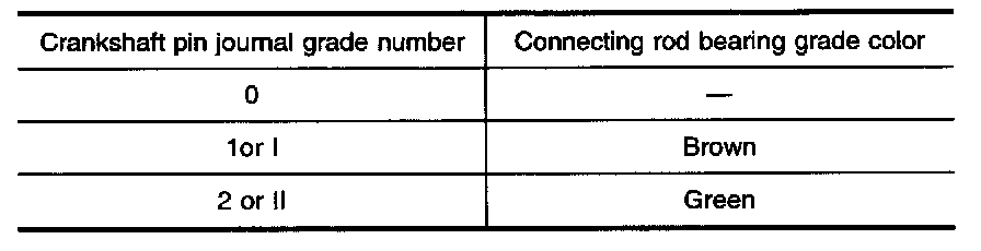 ^ If a new bearing, crankshaft or connecting rod is replaced, select connecting rod bearing according to the following table.