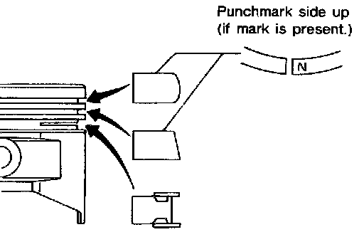 ^ When replacing piston rings, if there is no punch mark, install with either side up.