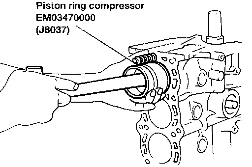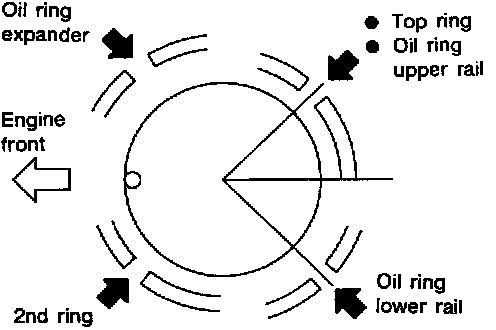 ^ When piston rings are not replaced, make sure that piston rings are mounted in their original positions.