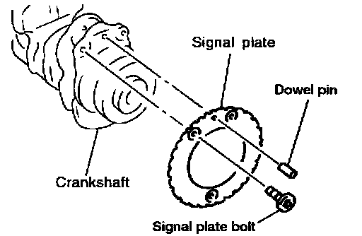 1. Install signal plate to crankshaft using dowel pin to properly position the signal plate. Remove the dowel pin after the signal plate bolts are tightened.