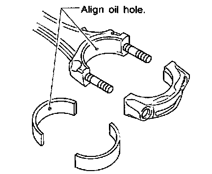 ^ Install bearings so that oil hole in connecting rod aligns with oil hole of bearing.