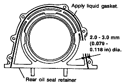b. Apply a continuous bead of RTV silicone sealant to rear oil seal retainer.