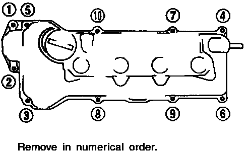 12. Remove rocker cover bolts in numerical order as shown in the figure.