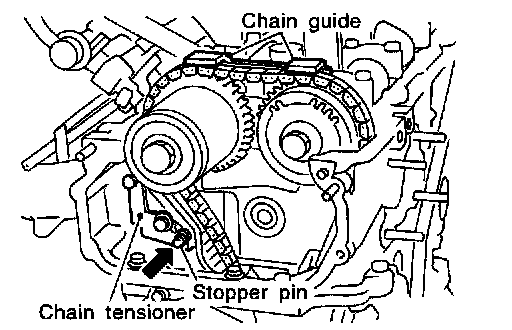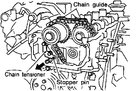 18. Attach a suitable stopper pin to chain tensioner.