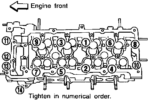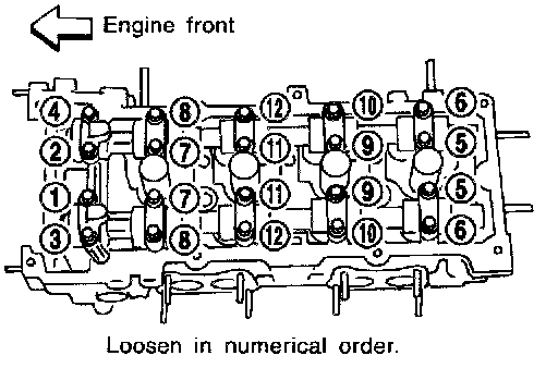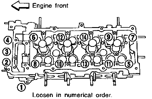 ^ Cylinder head bolts should be loosened in two or three steps.