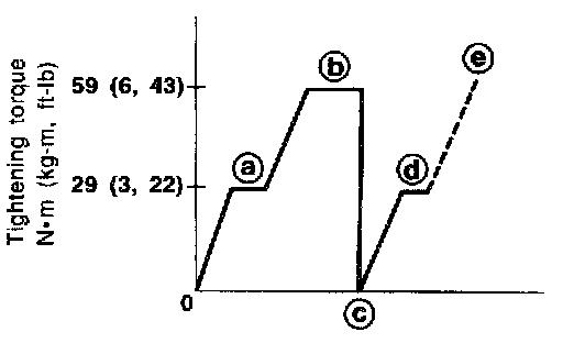 b) Tighten bolts to 59 Nm (6 kg-m, 43 ft. lbs.).