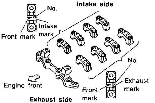 ^ Make sure camshaft brackets are aligned as marked during disassembly.