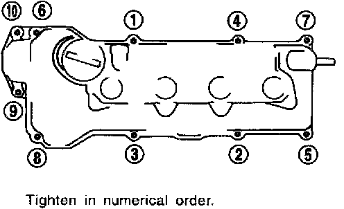 14. Install rocker cover with rocker cover gasket and tighten bolts in numerical order as shown in the figure.