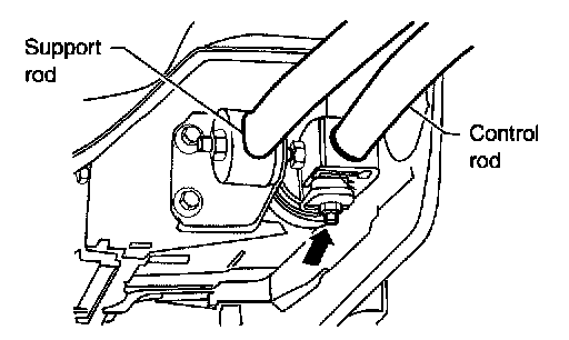 ^ Disconnect control rod and support rod from transaxle. (M/T models.)