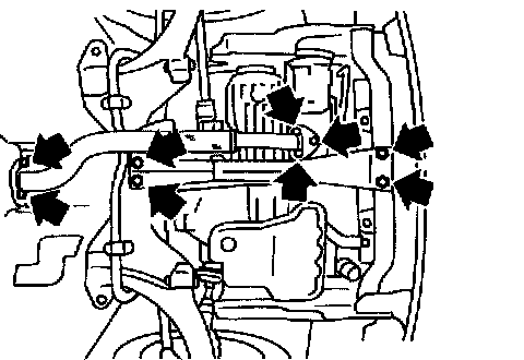 When lifting engine, be sure to clear surrounding parts. Use special care near brake tubes and brake master cylinder.
