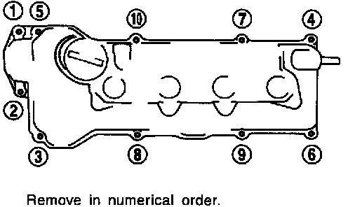 9. Remove rocker cover bolts in numerical order as shown in the figure.