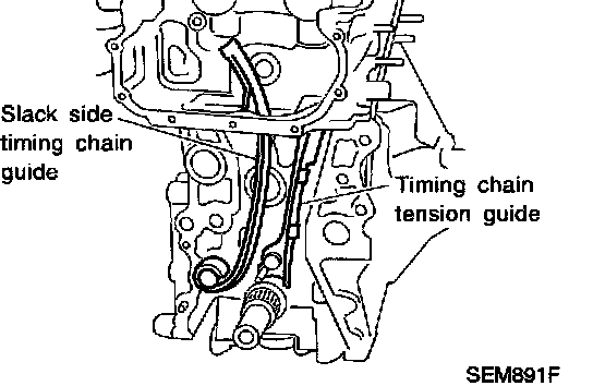- After removing timing chain, do not turn crankshaft and camshaft separately, or valves will strike piston heads.