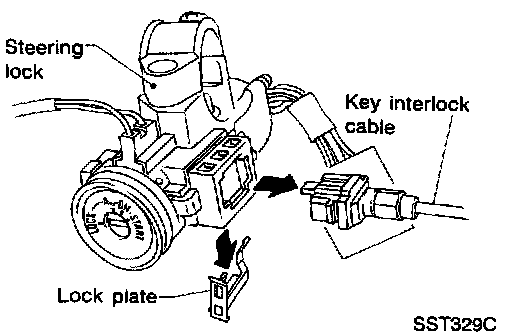 6. Remove key interlock cable (A/T models).
